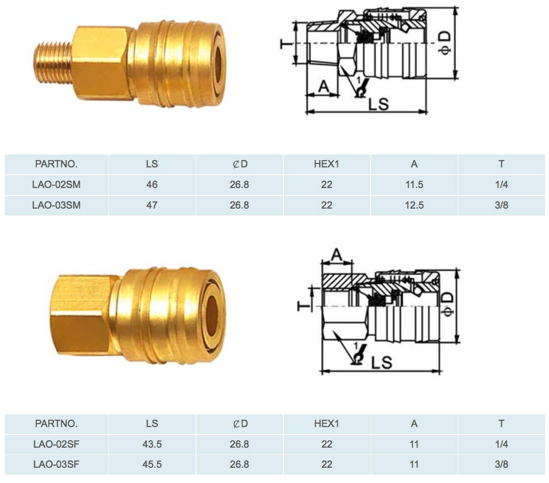NEXT:LAM 美式单开闭气动快速接头(黄铜)
